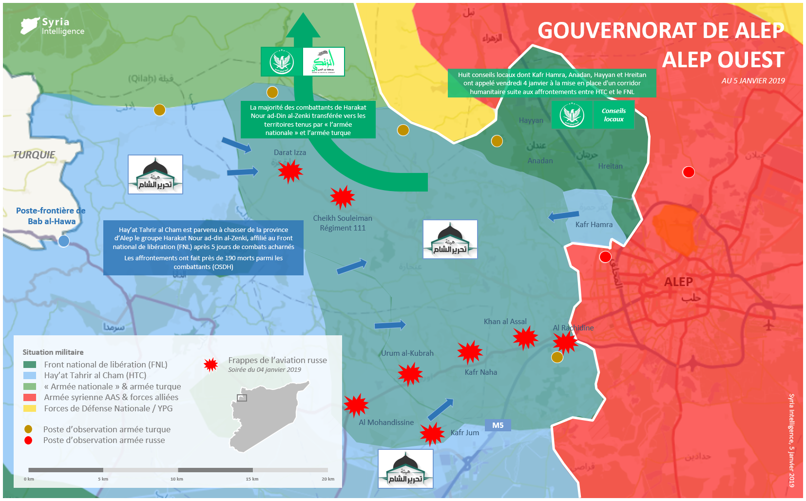 Hay’at Tahrir al Cham (HTC) est parvenu à chasser de la province d’Alep le groupe Harakat Nour ad-din al-Zenki, affilié au Front national de libération (FNL) après cinq jours de combats acharnés.