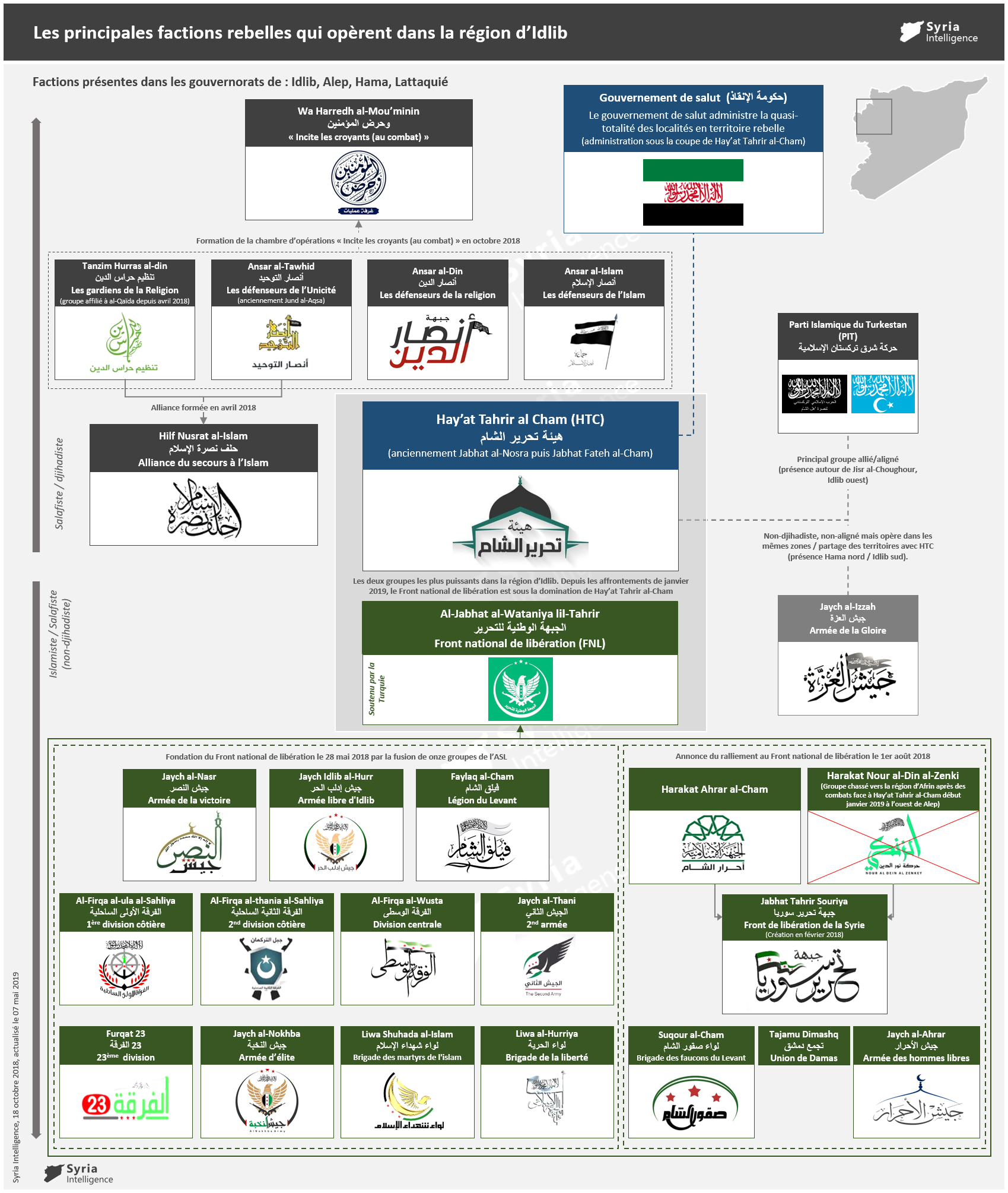 Les principales factions rebelles et djihadistes qui opèrent dans la région d’Idlib